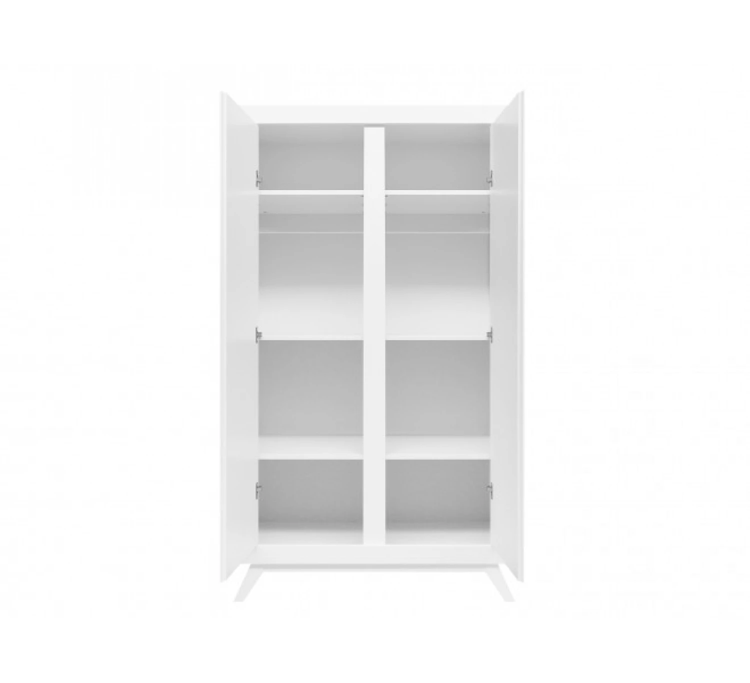 In deze ruime 2-deurskast Anne heb je voldoende ruimte om al jouw spullen in op te bergen. Het interieur bestaat uit twee vaste planken, twee in hoogte verstelbare hangroedes en vier in hoogte verstelbare legplanken. De serie Anne kenmerkt zich door de ranke schuine pootjes en greeploze deuren. De deuren zijn voorzien van subtiele horizontale groeven. De kast is afgewerkt met een dekkende witte lak op waterbasis en is kind- en milieuvriendelijk.