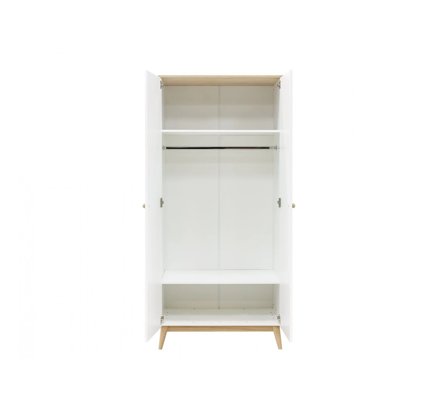 De 2-deurskast Paris van Bopita is voorzien van karakteristieke diagonale groeven en een eikenhouten afwerking, waardoor de kast een luxe uitstraling heeft. Het interieur bestaat uit één brede hangroede en twee legplanken. Hierdoor heb je dus voldoende ruimte om al je spulletjes en kleding te kunnen opbergen.