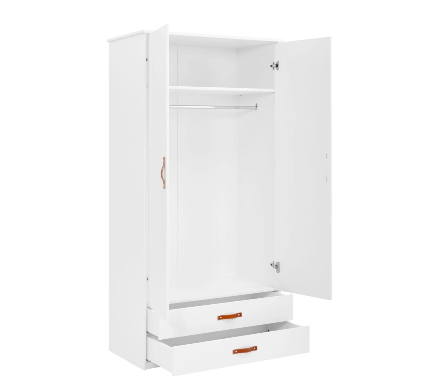 Met deze 2-deurskast van Cool Kids creëer je direct veel opbergruimte. Deze stevige kast is erg praktisch ingedeeld, zodat je er veel kleding en spullen in kwijt kunt. De laden van de kast zijn voorzien van een softclose systeem voor een veilig en hoogwaardig gevoel. De kast is daarnaast voorzien van lederen handgrepen voor een mooie stijlvolle afwerking.