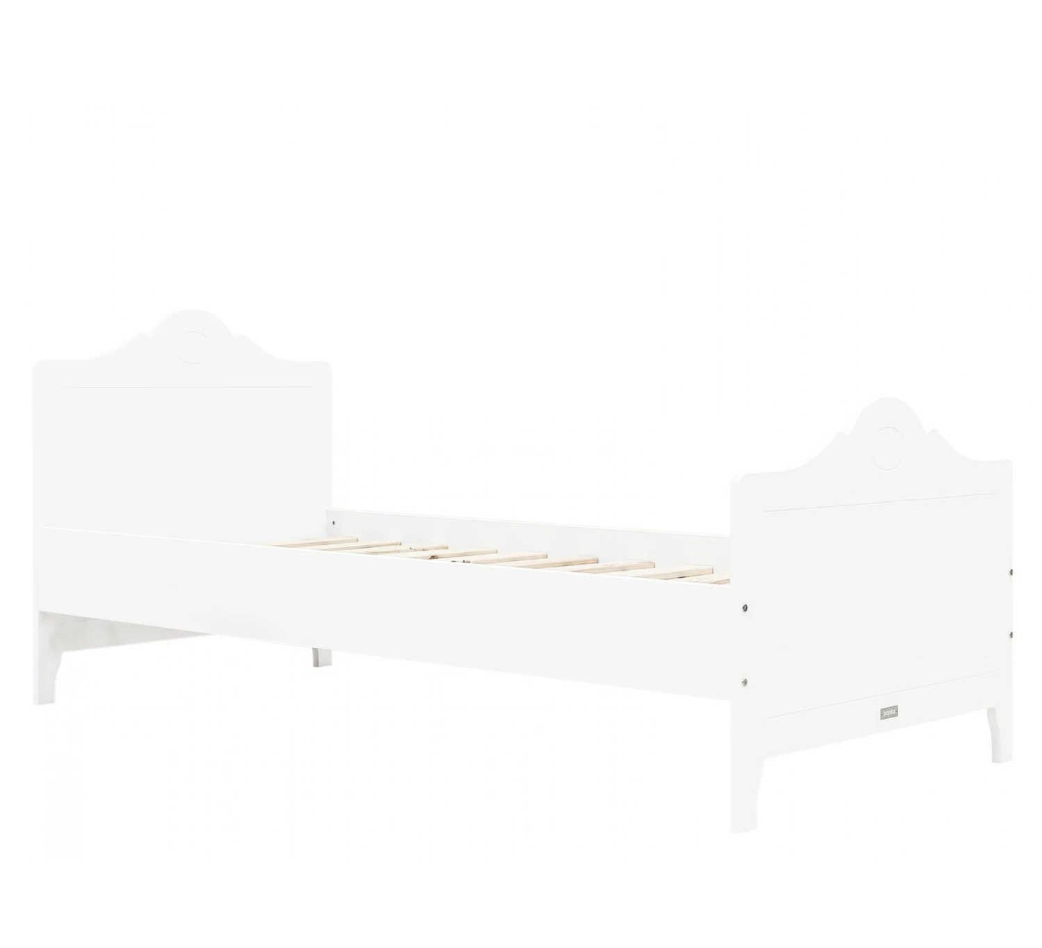 Het eenpersoonsbed Evi van Bopita heeft een kenmerkend gegolfd hoofd- en voeteneind wat het bed een sierlijk uiterlijk geeft. De afwerking van het bed is gedaan met een lak op waterbasis dat natuur- en kindvriendelijk is. Het bed wordt geleverd inclusief een rolbodem en exclusief matras. De bedlade Corsica van Bopita past onder het bed Evi.