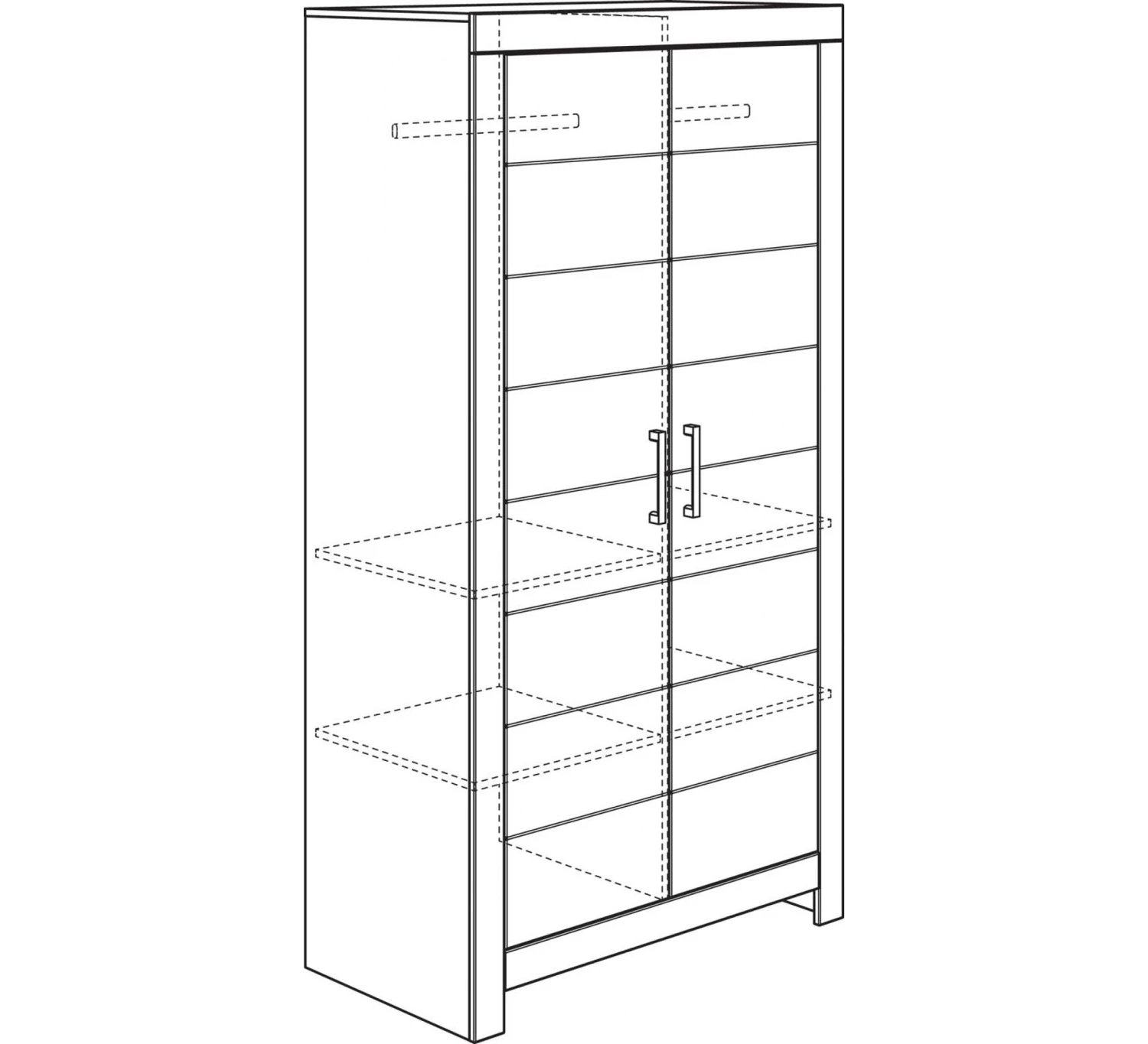 Fiona 2-deurs kast uit de collectie van Paidi is voorzien van 2 deuren, 1 tussenwand, 2 roedes en 4 legborden. De handgrepen zijn verkrijgbaar in mat chroom of glanzend chroom.