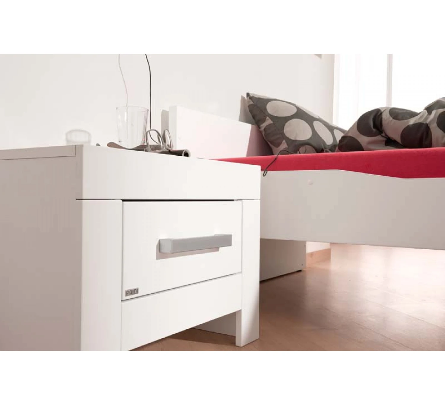 De Fiona nachtkast heeft 1 lade en is voorzien van een mat chromen handgreep. Afmeting: Breed: 53 cm Hoogte: 40 cm Diepte: 40 cm