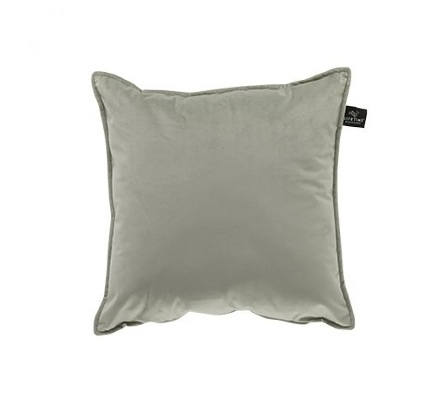 Dit mooie vierkante velourse kussen is van het merk Lifetime. Het kussen voelt lekker zacht aan en past in ieder interieur. De afmeting is 45×45 cm.