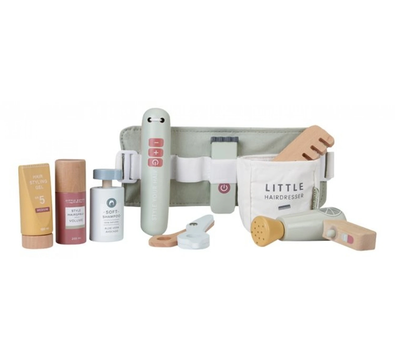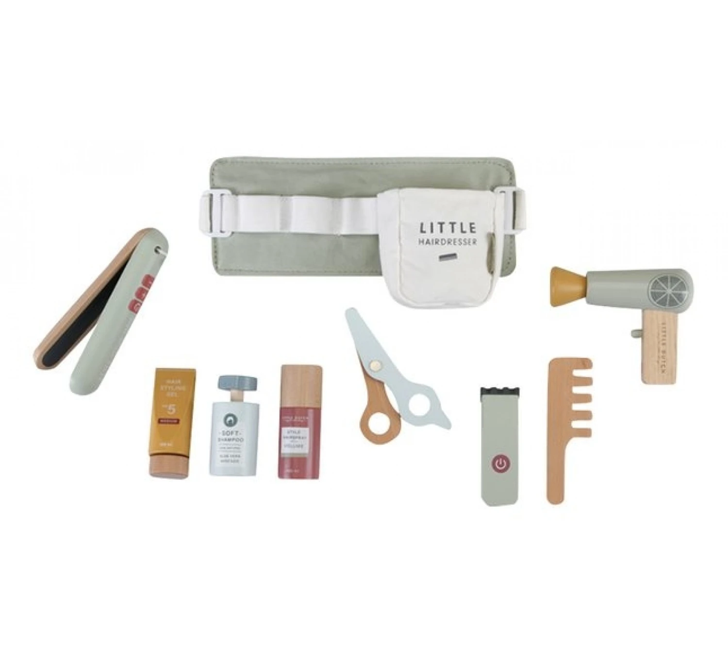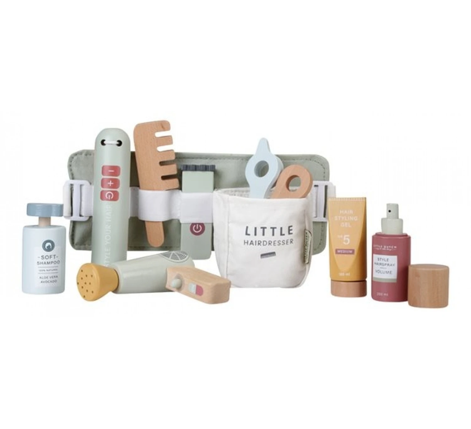 Tijd voor een nieuwe coupe? Je kleintje wordt een professionele kapper met deze houten kappersset van Little Dutch!