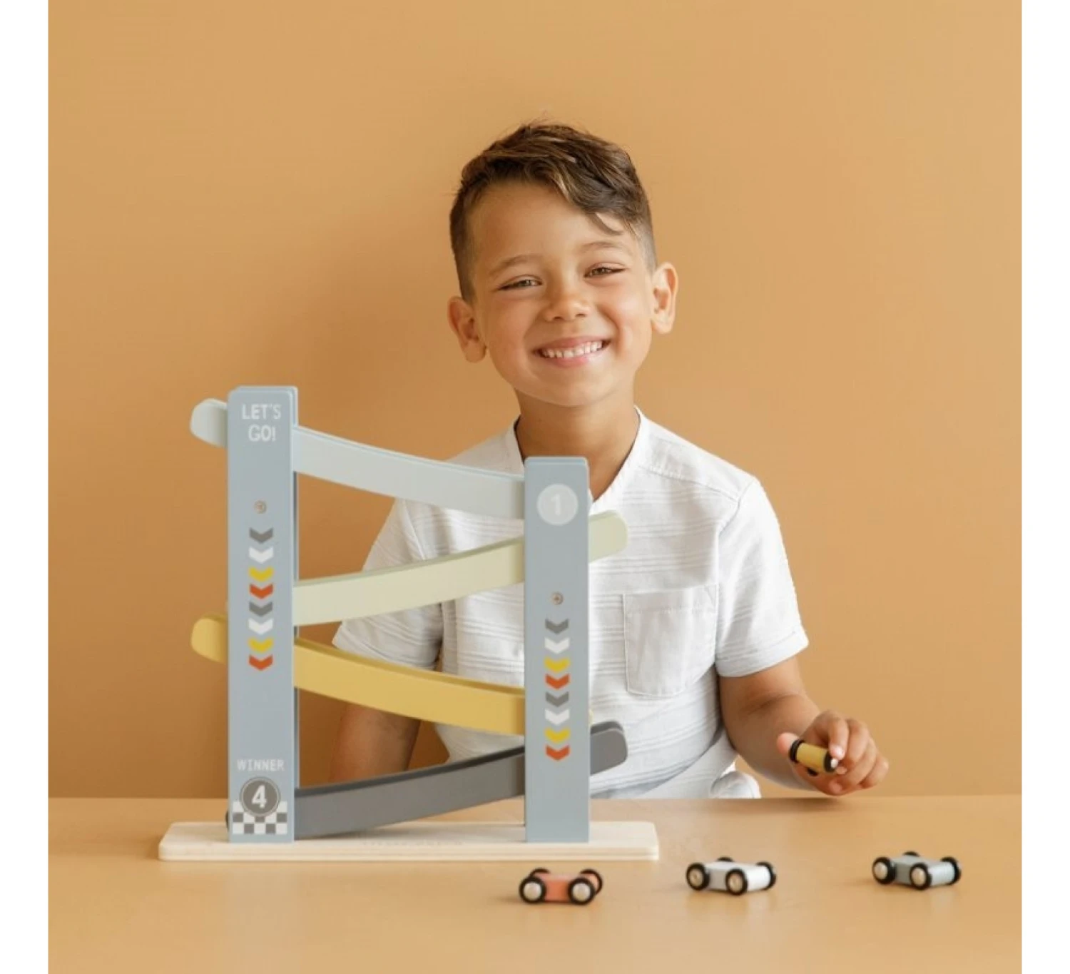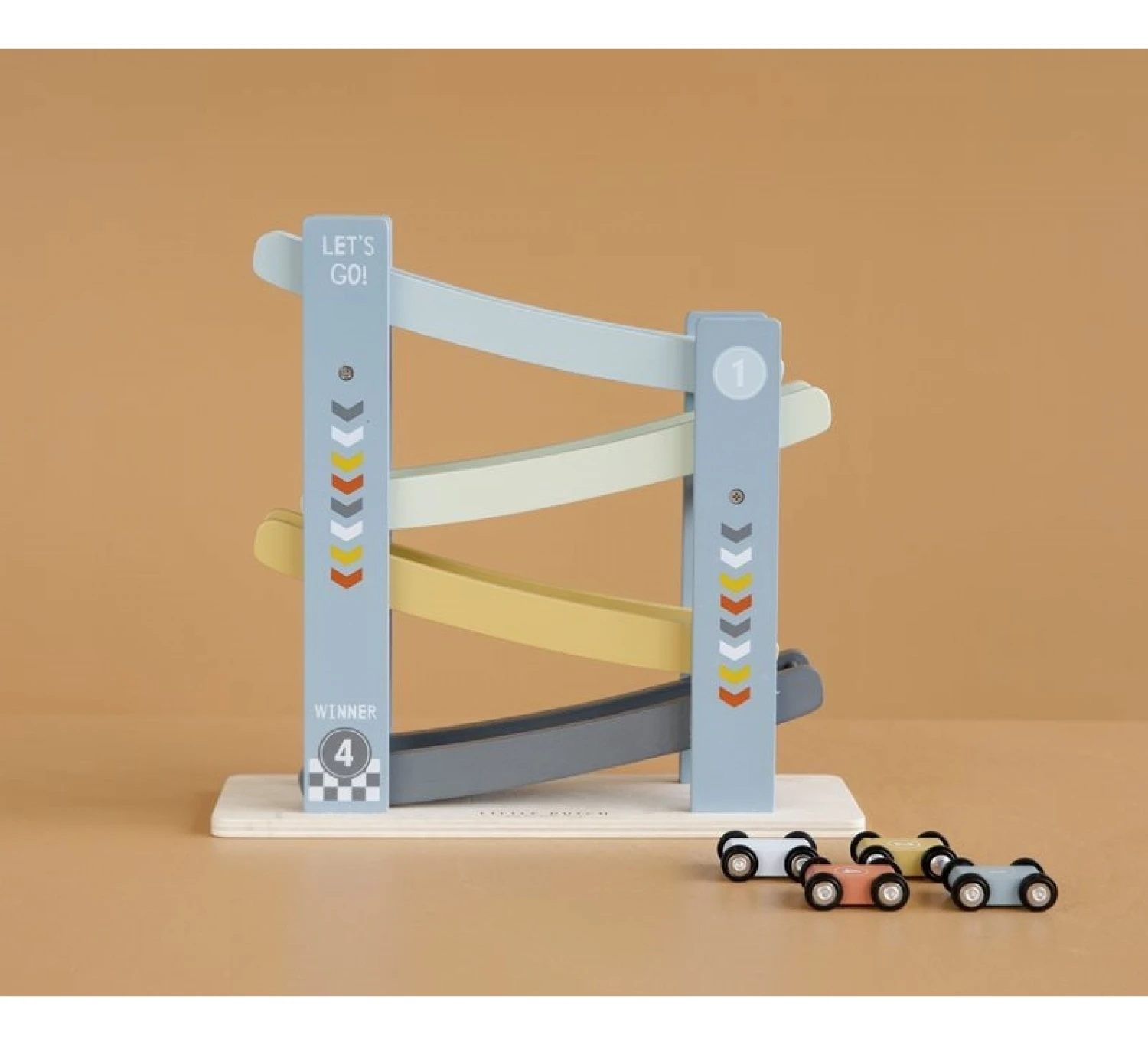 1, 2, 3, racen maar! Met deze vrolijke houten autobaan inclusief 4 auto’s vermaakt je kleintje zich prima. Zet de auto’s een voor een boven op de racebaan, laat ze los en ze racen naar beneden. Kindjes vinden dit geweldig!