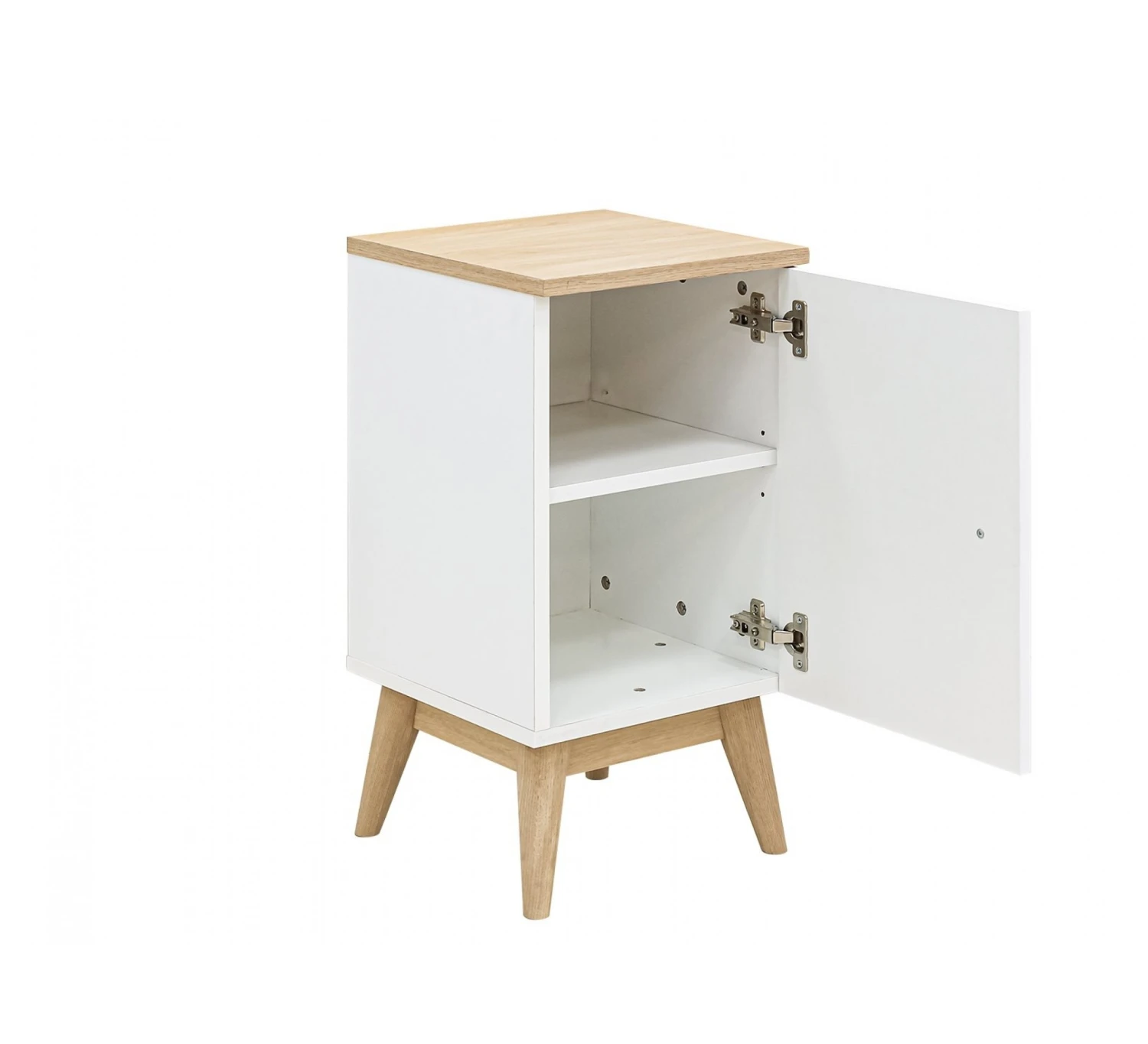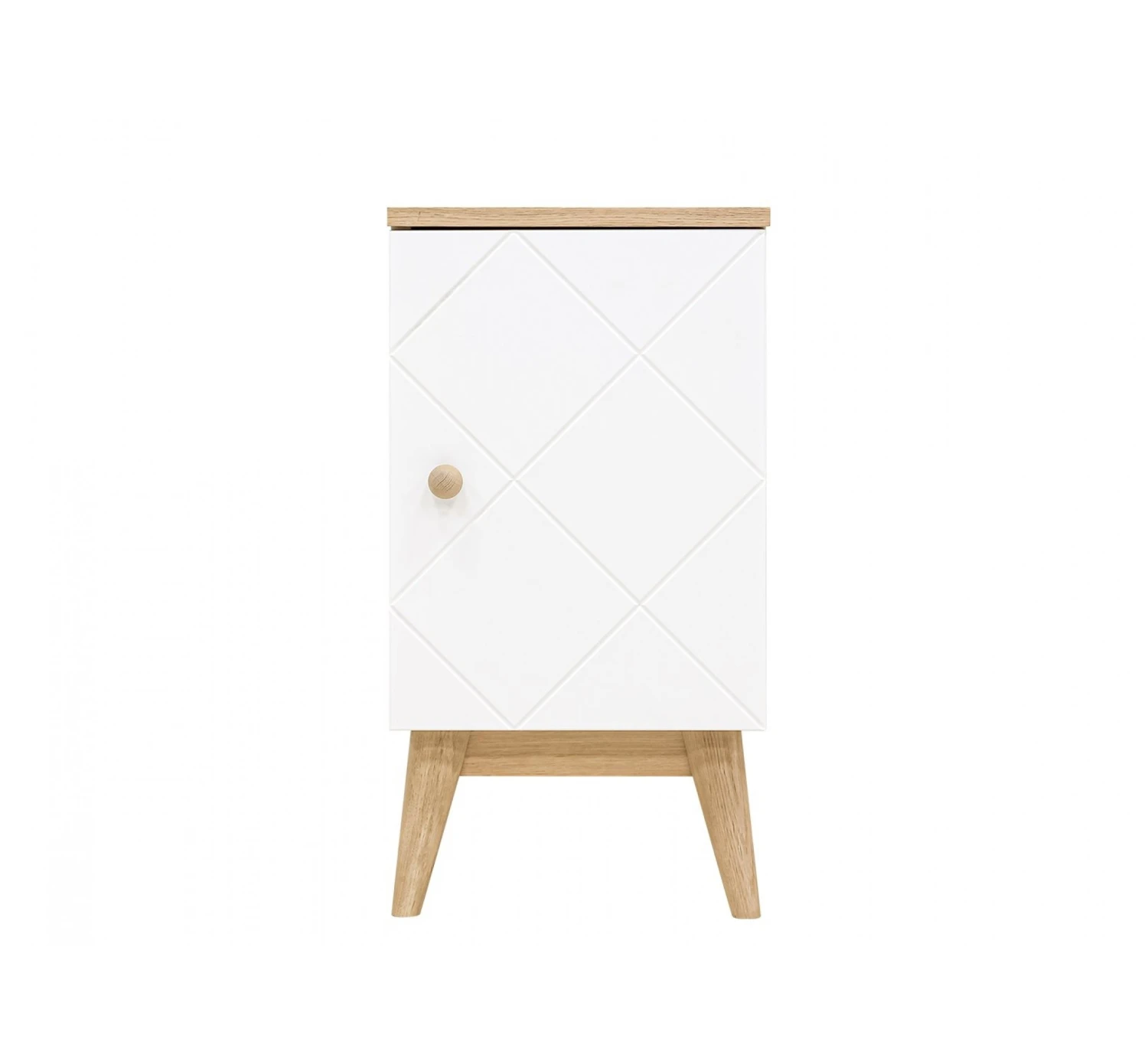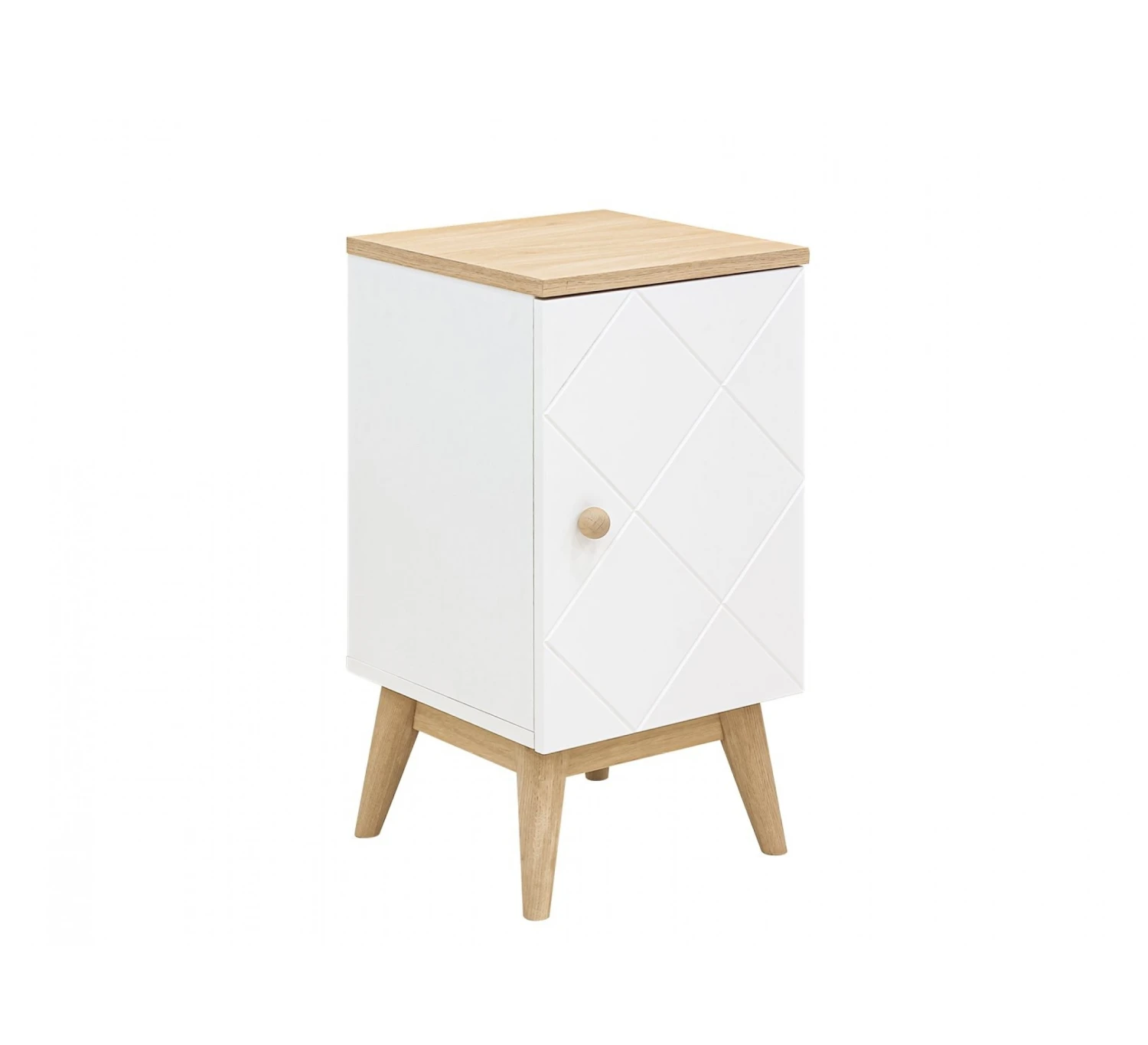 Het nachtkastje Paris is voorzien van diagonale groeven en staat op taps toelopende eiken poten. Dit geeft het nachtkastje een mooie luxe uitstraling. Achter het deurtje bevindt zich een legplank en voldoende ruimte om je spullen in op te bergen.