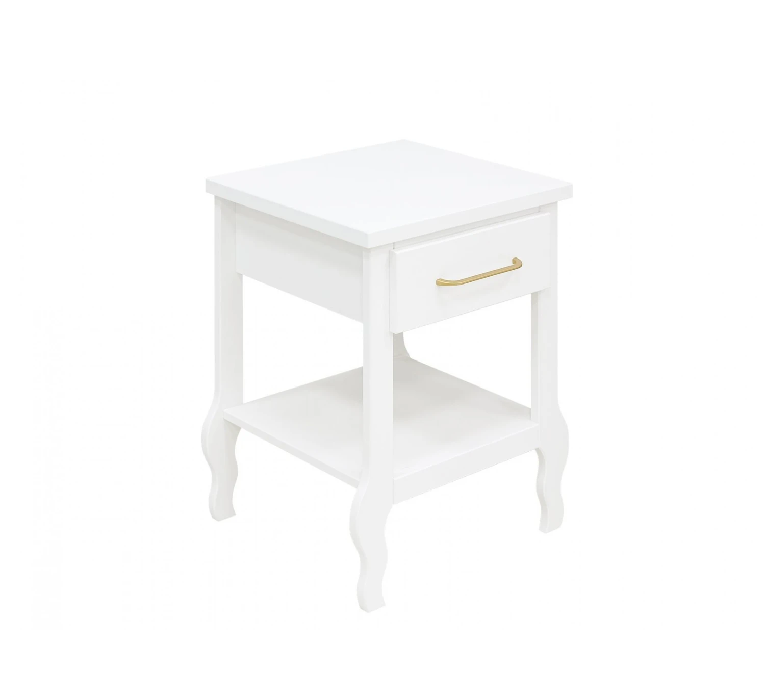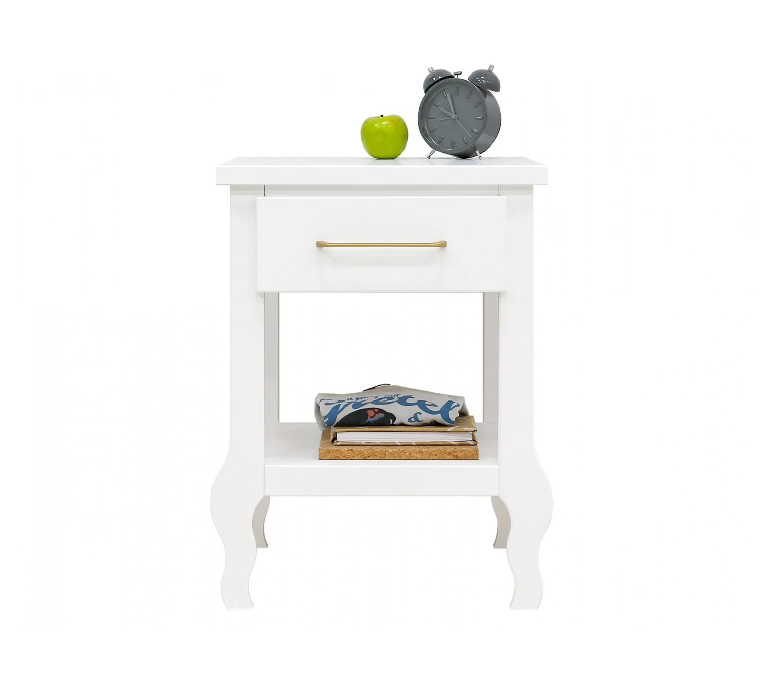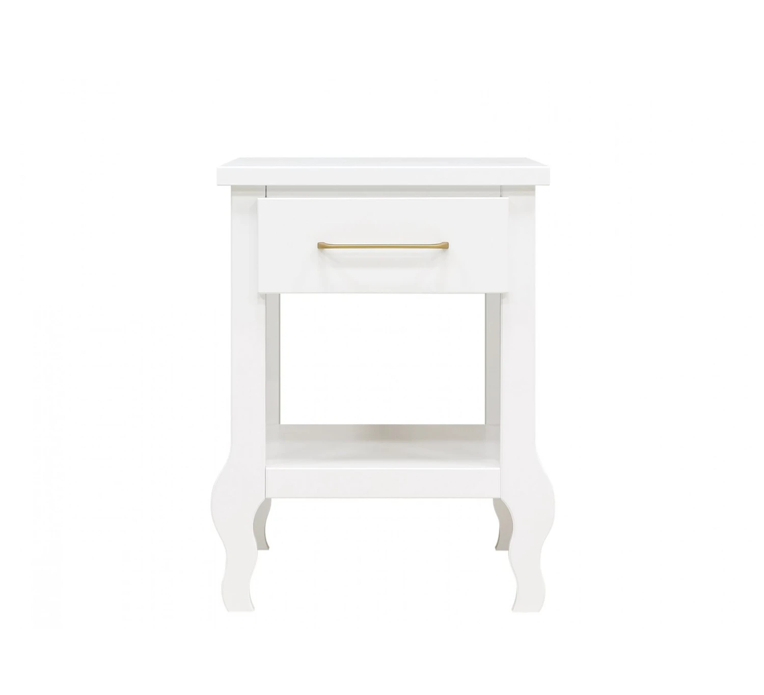Het nachtkastje Elena is voorzien van een lade en een legplank. De lade is voorzien van een ranke, matte, goudkleurige handgreep. Het nachtkastje staat op sierlijke poten. Dit nachtkastje is ideaal om spullen in de lade op te bergen of een paar leesboeken makkelijk bij de hand te hebben naast bed.