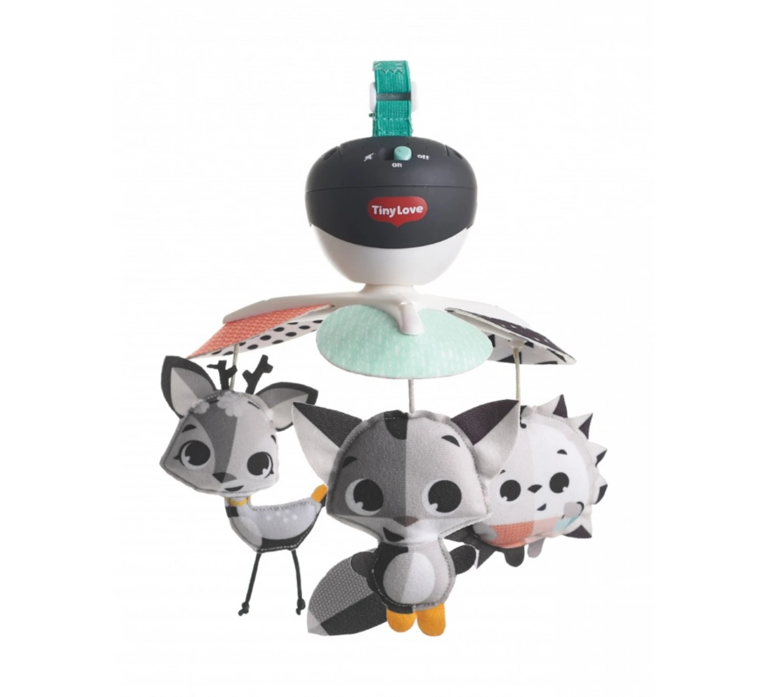 Laat je inspireren – thuis en onderweg. De Magical Tales™ Take Along Mobile™ is niet alleen geweldig om naar te kijken, het speelt ook vijf verschillende muzikale deuntjes. Dus het zou niet verrassend zijn als je babytje er geen genoeg van kan krijgen. Gelukkig is het supereenvoudig om te bevestigen op reiswiegjes, kinderwagens, bedjes en meer, zodat je baby de vrijheid heeft om altijd geïnspireerd te zijn en te groeien in vaardigheden zoals taal en communicatie, zintuigen en emotionele intelligentie. Bovendien zorgen de zoete zwart-witte karakters van de mobiel voor een visuele stimulatie van je baby en ze passen perfect bij een moderne inrichting. De Magical Tales Take Along Mobile™ speelt 30 minuten lang melodieën zonder te herhalen. De mobiel kan op twee verschillende manieren bevestigd worden; met een clip of klittenband strip.